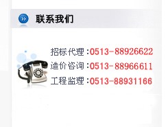 招標代理:0513-88926622 造價咨詢:0513-88966111 工程監理:0513-88931166 傳真:0513-88908111