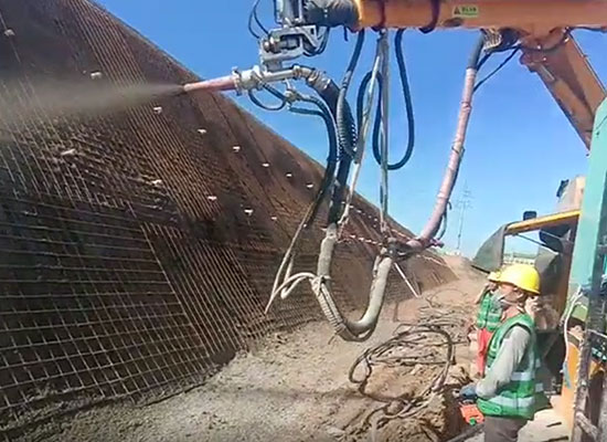 混凝土濕噴機(jī)械手是大型智能化混凝土濕噴設(shè)備,理論噴射排量每小時(shí)30立方?;炷翝駠姍C(jī)械手采用全自動(dòng)無(wú)線遙控操作,智能控制添加液壓速凝劑,能靈活方便的完成各種作業(yè)面的混凝土噴射作業(yè)。混凝土濕噴機(jī)械手廣泛應(yīng)用于鐵路隧道、公路隧道、水利涵洞、礦山巷道、堤壩邊坡、建筑基坑和軍事工程等領(lǐng)域施工中的噴射混凝土支護(hù)作業(yè)。